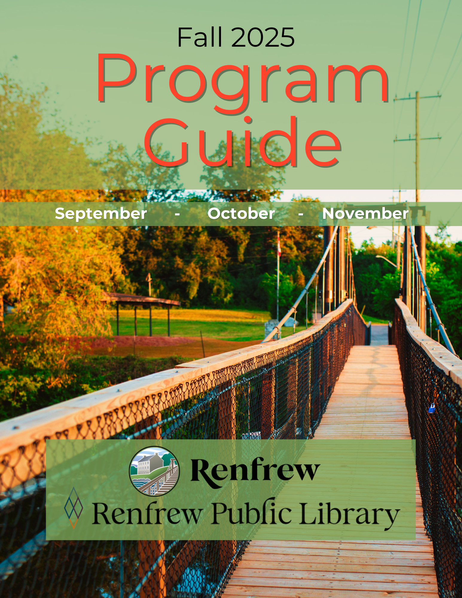 Check out the Fall Program Guide A combined program guide for the Renfrew Public Library and the Town of Renfrew. It has all the events and programs happening in September, October and November (though keep your eyes peeled for some spontaneous pop-ups!) The guide is clickable and will take you to more information/registration pages for each program/event.